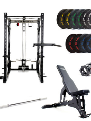 Body Power PR100 Power Rack with Lat Attachment, Pec Dec & UB100 Utility Bench
