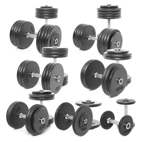 - Set comprises: 2.5-45kg (18 pairs – 2.5kg increments)