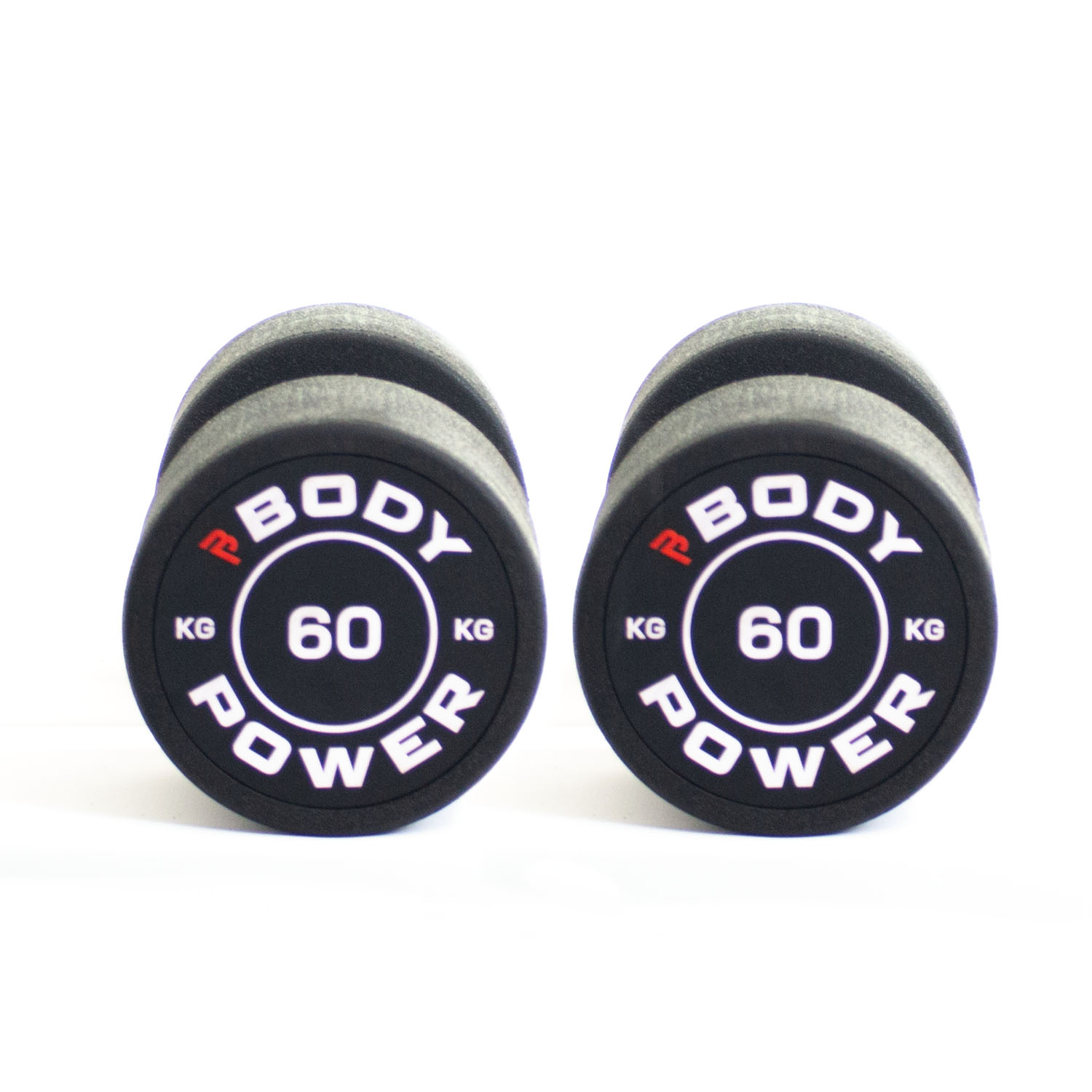 - Newly-Designed End Caps: Easily identify your desired weight. Font size is slightly smaller than used on the Body Power Pro Round Rubber Dumbbells up to 50kg
