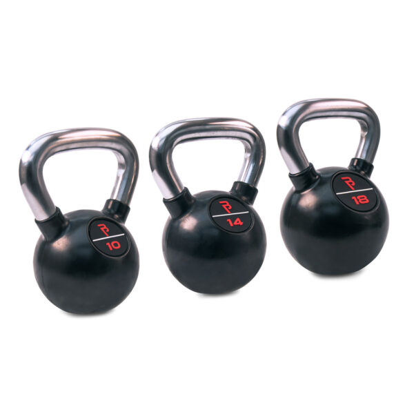 The Body Power Premium Black Rubber Kettlebell offers maximum durability and protection with a solid chrome build and rubber coating, while its black and silver uniform design featuring a chrome handle provides a super-smooth finish for the ultimate comfortable handling. Alongside that, this kettlebell offers a balanced base allowing the weight to stand alone when placed down. This set includes the 8kg, 12kg and 16kg kettlebells.