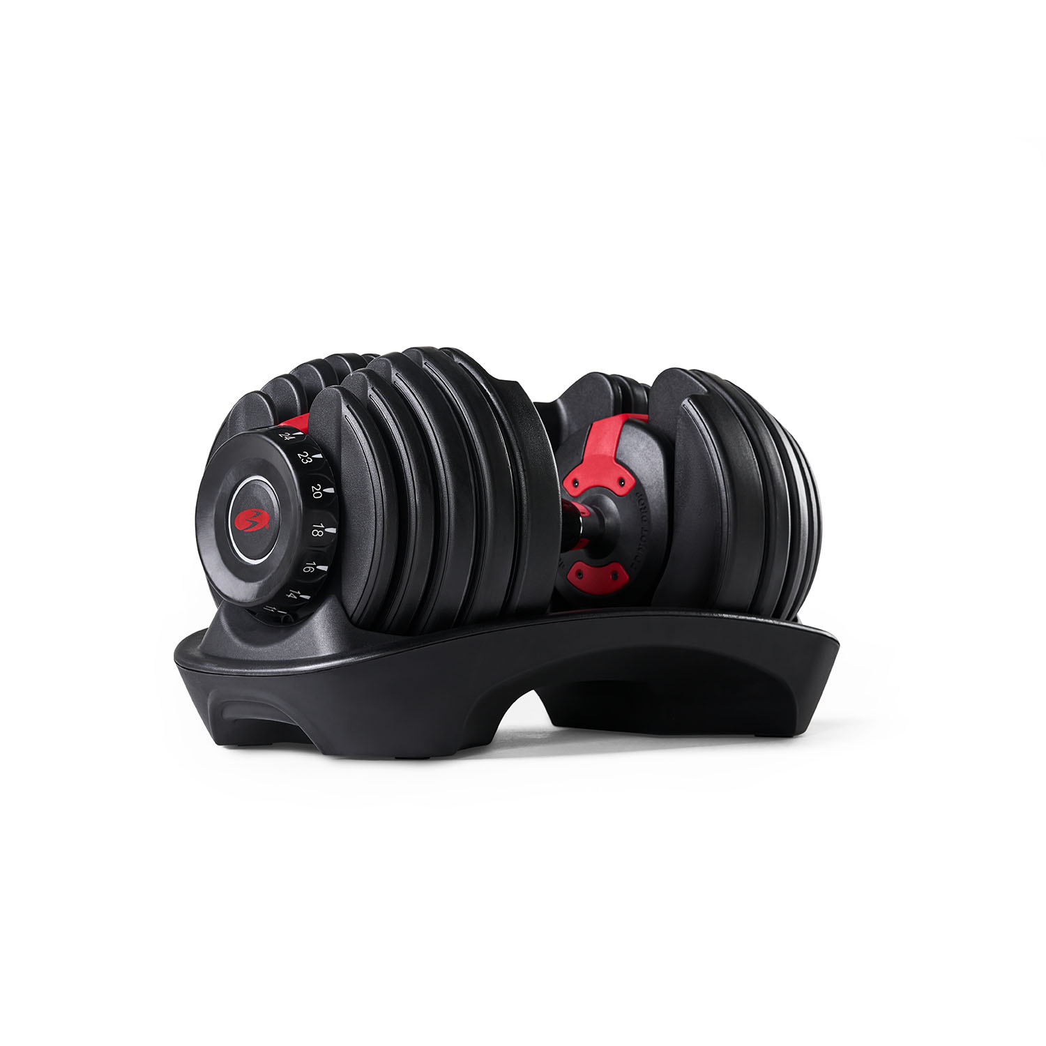 - One adjustable dumbbell: Replaces 15 individual free weights