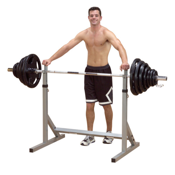 The Powerline Squat Rack features an extremely a solid and stable 2″ x 2″ mainframe, which holds the bar safe and secure even with the heaviest of weights. Designed with bar supports which feature height adjustments from 30 to 60 inches, they are suitable for performing Flat/Incline/Decline Bench Presses, Squats, Curls, Upright Rows, Shrugs, Calf Raises, and much more. Barbell, weights and collars are optional (sold separately).