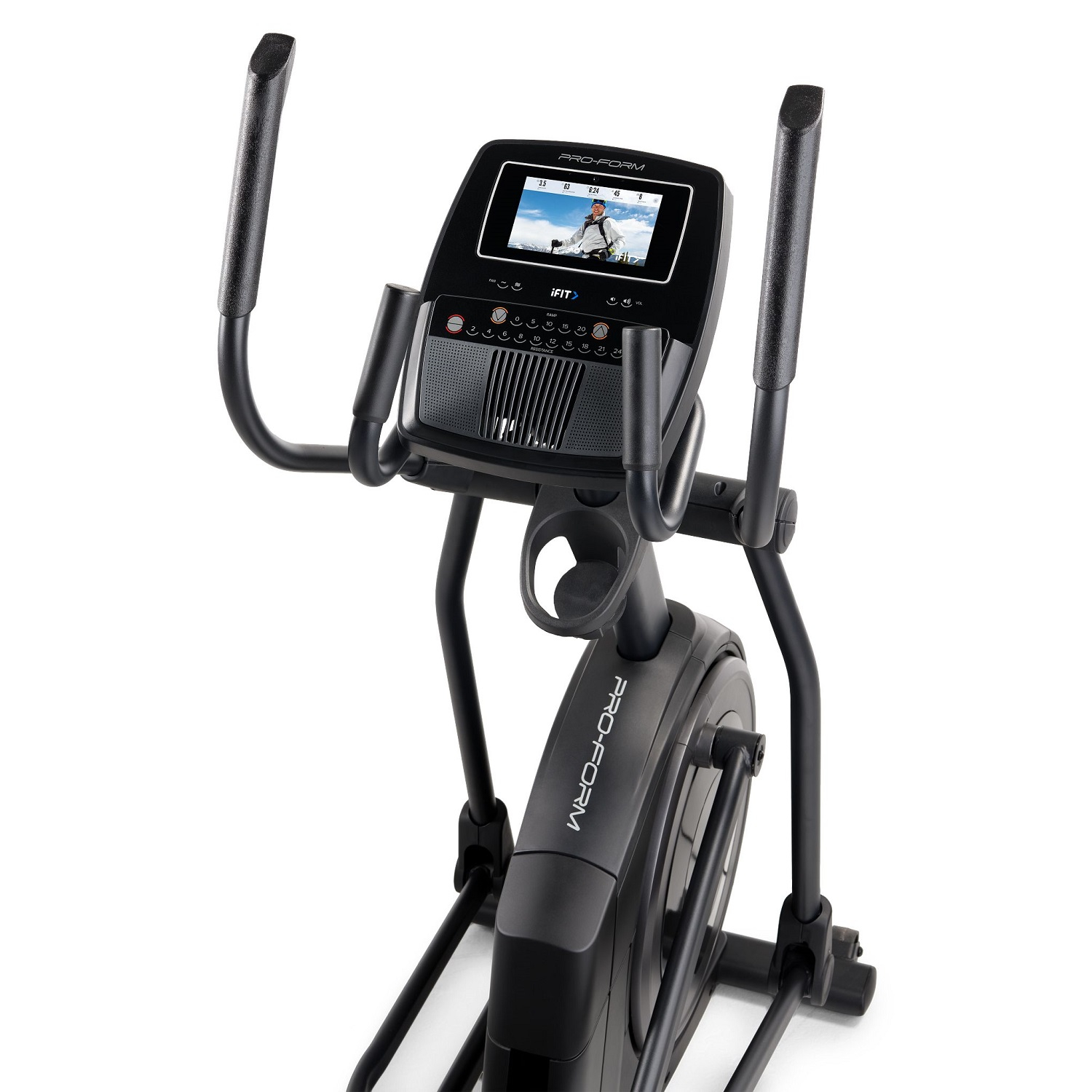 With an 11kg flywheel, a 48cm auto-adjustable stride length and 24 levels of digital resistance, the ProForm Carbon E7 Elliptical deliver an incredibly smooth exercise experience. Incline of up to 20° let you raise the intensity of your workout at the touch of a button, with soft touch upper body grips ensuring full-body engagement as you stride. The ProForm Carbon E7’s 7” full colour capacitive touch display lets you stream iFIT workouts led by world-class personal trainers who control your machine’s settings in real-time to maximise your workout. With iFIT, you can access an ever-expanding library of on-demand workouts, automatically track your progress, enjoy real-life running routes with Google Maps™, compete with your friends and custom-tailor your training to your specific goals (iFIT Pro membership required). The Carbon E7 is fitted with ActivePulse™ Technology, which lets the machine automatically adjust your resistance and incline to maintain your optimal heart rate zone (SmartBeat™ Arm Band required – sold separately). Play your audio through two 2” speakers (or through your Bluetooth headphones), stay cool with the integrated Coolaire workout fan and keep on top of your hydration with a built-in water bottle holder.