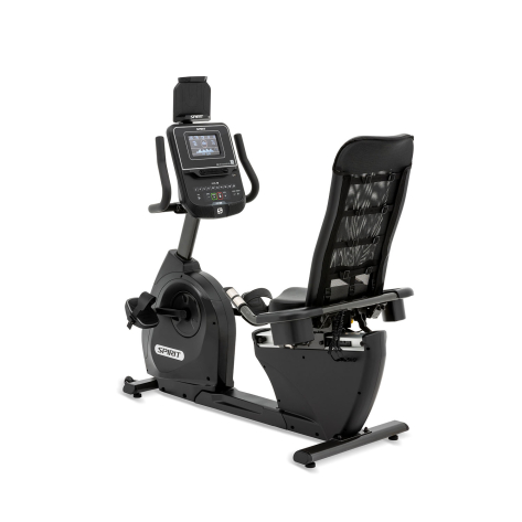 Comfortable and ergonomic, the Spirit XBR55 Recumbent Bike delivers a quality ride every time. Its step through design makes it easy to get on and go, with oversized pedals, a high density seat and adjustable nylon mesh back ensuring comfort for even the longest of sessions. The console incorporates a 7.5” multi-colour LCD display that shows you all your important workout stats and metrics, including your heart rate, which can be measure either by holding on the integrated contact points on the handles by your sides or via a Bluetooth chest strap (not included). There are a variety of pre-set workout programs to choose from, including Manual, Hill, Fat Burn, Cardio, Strength, HIIT, Fusion, Time, Distance, Calories, 2 Custom and 4 Heart Rate. The XBR55 also connects to some leading fitness apps, like Zwift and Kinomap, plus Map My Fitness, Apple Health Kit and more via the Spirit + App. Completing the console is a built in tablet holder above the screen that can tilt and swivel, direct-access resistance buttons for working your way up through 20 resistance levels, an adjustable cooling fan, a USB charging port and integrated Bluetooth speakers.